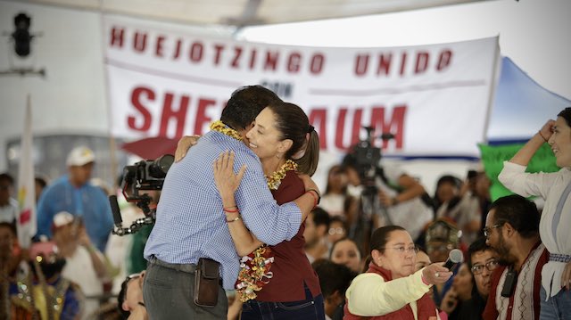 Una tarde lluviosa que no impidió el buen ánimo de las mujeres que corearon “Claudia, presidenta, Claudia presidenta… “ y ella agradeció el gesto al tiempo que Julio Huerta, su coordinador político, le alzó la mano en señal de victoria.