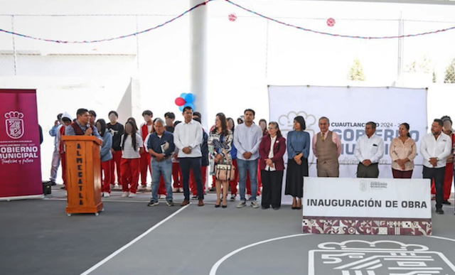 Cuautlancingo, Pue.– Con el fin de continuar con el fortalecimiento de la infraestructura educativa, el Presidente municipal de Cuautlancingo, Omar Muñoz, inauguró el techado y la rehabilitación de la cancha de usos múltiples del Bachillerato General Oficial Almecatla, en el que se invirtieron 2.3 millones de pesos.
