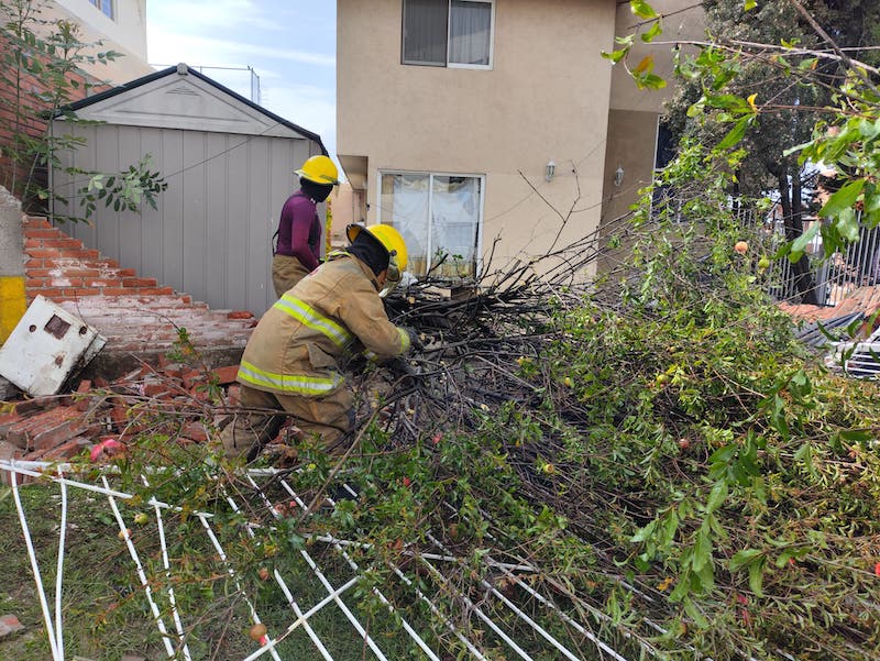 – En otro punto del mismo fraccionamiento, el desgaje de un pino provocó la caída de una rama sobre cables de mediana tensión. Ante esta situación, se solicitó el apoyo de la Comisión Federal de Electricidad (CFE), la cual retiró la rama y logró restablecer el 80% del suministro eléctrico.