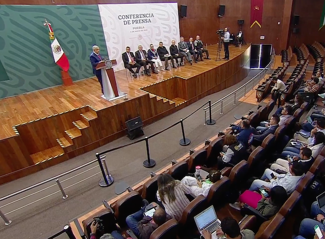 Andrés Manuel en su conferencia «mañanera», en la XXV Zona Militar