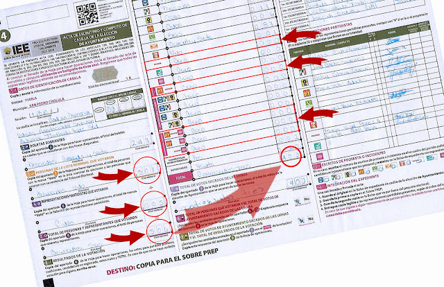 5.- Los paquetes electorales se perdieron o llegaron a su destino muchas horas después de la terminación de los conteos y cierres de casilla, así mismo la manipulación de la información por parte de actores panistas generaron en los siguientes días la falta de certeza en los resultados, por ello fue muy acertada la petición de la candidata de Morena de que se contara voto por voto y en las oficinas centrales del IEE, puesto que los conservadores ya preparaban acciones violentas en las instalaciones del consejo municipal, otra vez la violencia se dejaba ver como último recursos de las huestes prianistas.