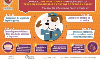 DiarioSinSecretos.com REGLAMENTO PARA LA TENENCIA RESPONSABLE Y CONTROL DE PERROS Y GATOS PARA EL MUNICIPIO DE CUAUTLANCINGO, PUEBLA CAPÍTULO I DISPOSICIONES GENERALES ARTÍCULO 1 El presente...
