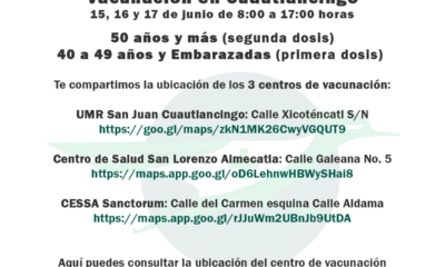 DiarioSinSecretos.com Del martes 15 al jueves 17 de junio de 8:00 a 17:00 horas, se realizará la jornada de Vacunación contra el Covid 19 de la...
