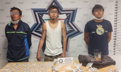 DiarioSinSecretos.com — A los asegurados les encontraron 168 dosis de aparente droga CIUDAD DE PUEBLA, Pue.- Agentes de la Policía Estatal detuvieron a tres presuntos vendedores...