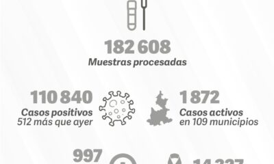 Ciudad de México , Estado de México, Nuevo León, Guanajuato, Jalisco, Tabasco, Puebla, Veracruz, Sonora y San Luis Potosí, tienen la mayoría de contagios de COVID-9,...