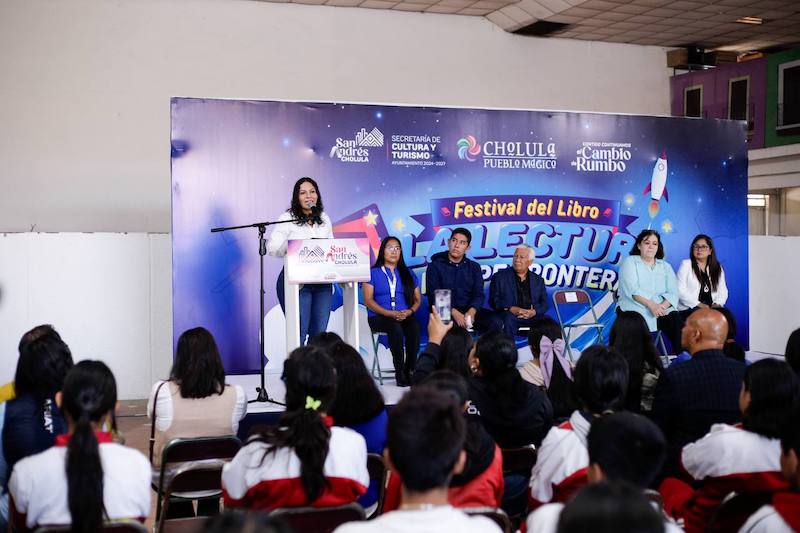 San Andrés Cholula, Puebla. Con el propósito de fomentar el hábito de la lectura en la niñez y adolescencia, la presidenta municipal Lupita Cuautle Torres celebró el primer Festival del Libro: La Lectura Rompe Fronteras en el auditorio municipal de San Andrés Cholula.