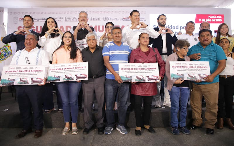 Ciudad de Puebla.- El gobernador Alejandro Armenta, encabezó la entrega de 120 Centros de Transformación de Residuos, Compostador y Recicladora de Plástico, los cuales impulsan un modelo de economía circular, donde se cumple el proceso de comprar, procesar, empacar, consumir y reutilizar, con el propósito de reducir la contaminación y proteger al medio ambiente.