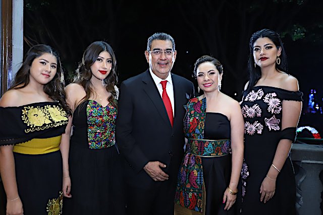 Tras el Grito de Independencia, Sergio Salomón y su esposa Gaby, presidieron la cena que se ofreció. En el patio del Palacio Municipal, rodeados de funcionarios estatales, funcionarios estatales y diputados.
