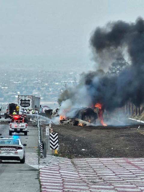 La autopista México-Puebla está cerrada a la circulación vehicular a la altura del km 39, antes de la caseta de San Marcos Huixtoco, con sentido a la Ciudad de México, luego de que una pipa cargada con diesel se volcó volcada entrando a la zona de rampa, al parecer por falla de frenos. En la zona hay un embudo vial