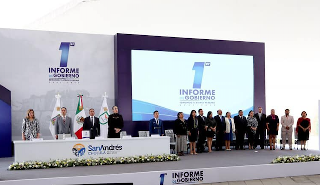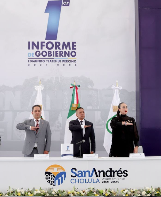 San Andrés Cholula, Pue.- En su primer informe de actividades, el alcalde Edmundo Tatehui Percino, sostuvo que su gobierno no ha puesto excusas, ni culpar a las pasadas autoridades – de MORENA-que le antecedieron por el desorden que se dejó al ayuntamiento, por el contrario se ha trabajado fuerte y con transparencia, en un decidido combate a la delincuencia, pobreza y corrupción.