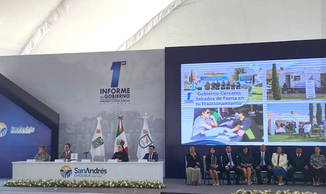 De esta forma, el presidente municipal de San Andrés Cholula Edmundo Tlatehui Percino, en cumplimiento al mandato de ley, llevó a cabo el ejercicio de rendición de cuentas sobre el estado que guarda la Administración Municipal en el primer año de gestión.