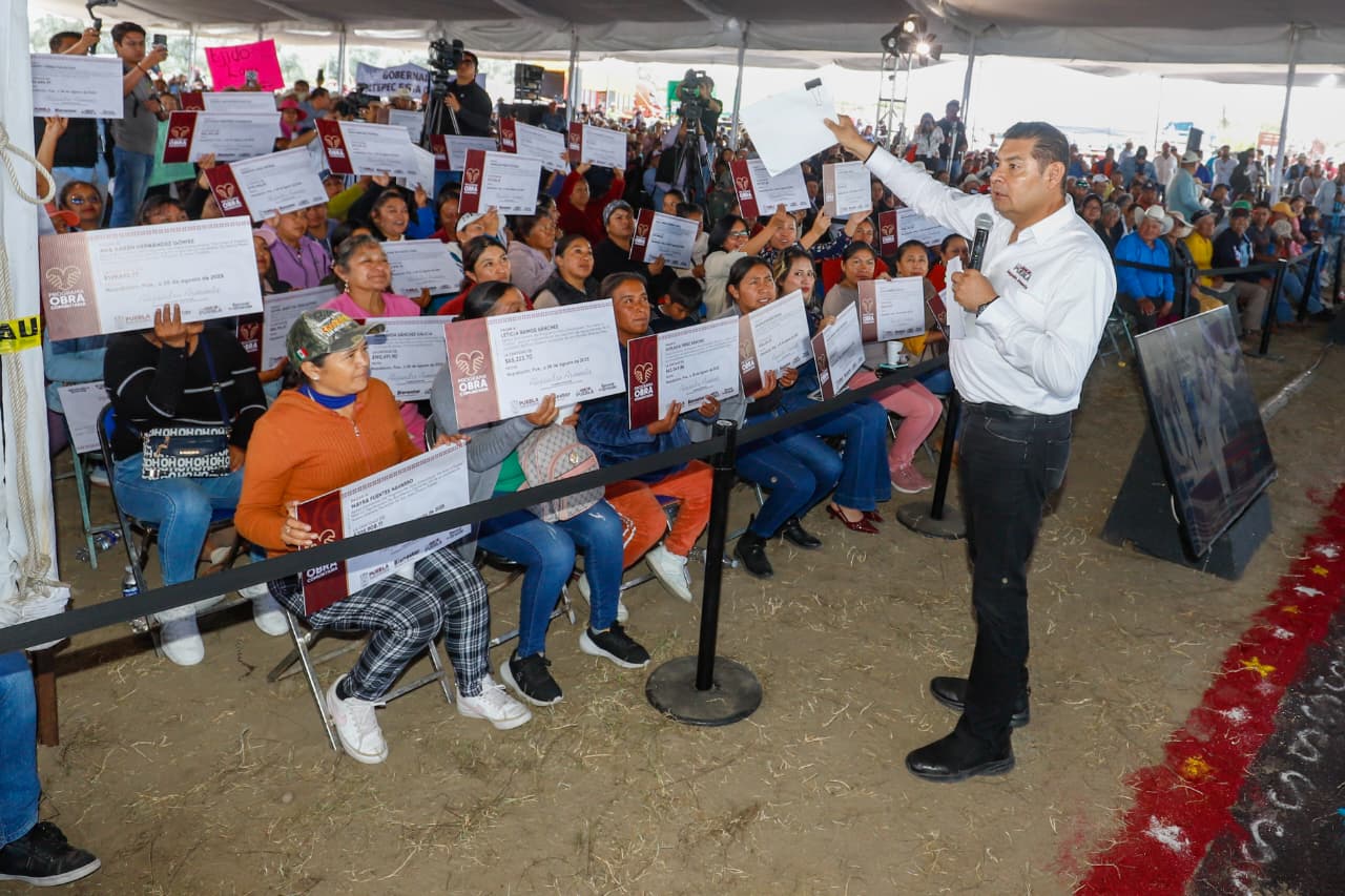 El ejecutivo estatal subrayó que en toda la microrregión 11 de Acatzingo se han entregado recursos para 149 obras comunitarias, y recordó que para este año se destinaron mil millones de pesos para el programa con 4 mil 500 comités, donde el 100 por ciento son tesoreras, quienes con honestidad y transparencia administran los fondos.