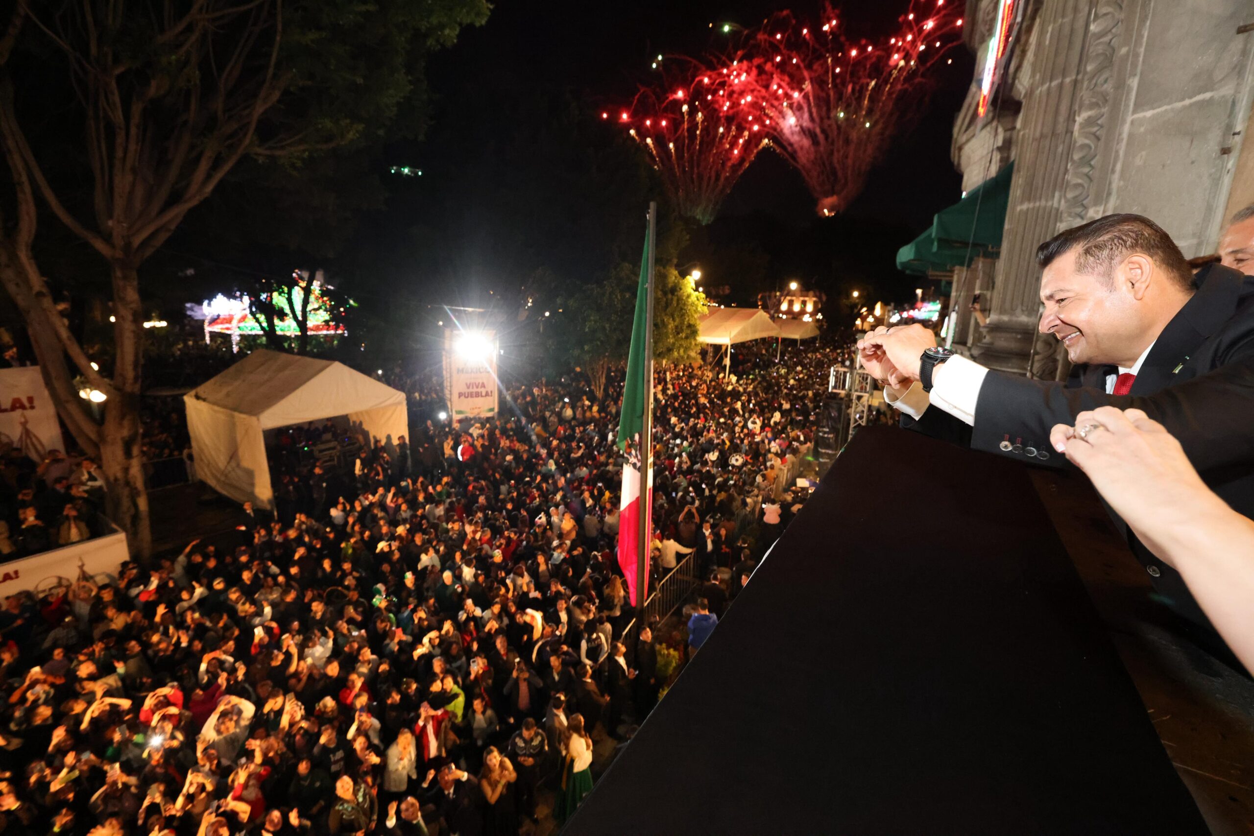 CIUDAD DE PUEBLA, Pue.- En un ambiente de paz, de unión familiar y profundo orgullo patrio, desde Palacio Municipal, el gobernador de Puebla, Alejandro Armenta, presidió la Ceremonia del 215 Aniversario del Grito de Independencia, acompañado por su esposa, Ceci Arellano; el presidente municipal, José Chedraui Budib, y su esposa Mari Elise Budib.