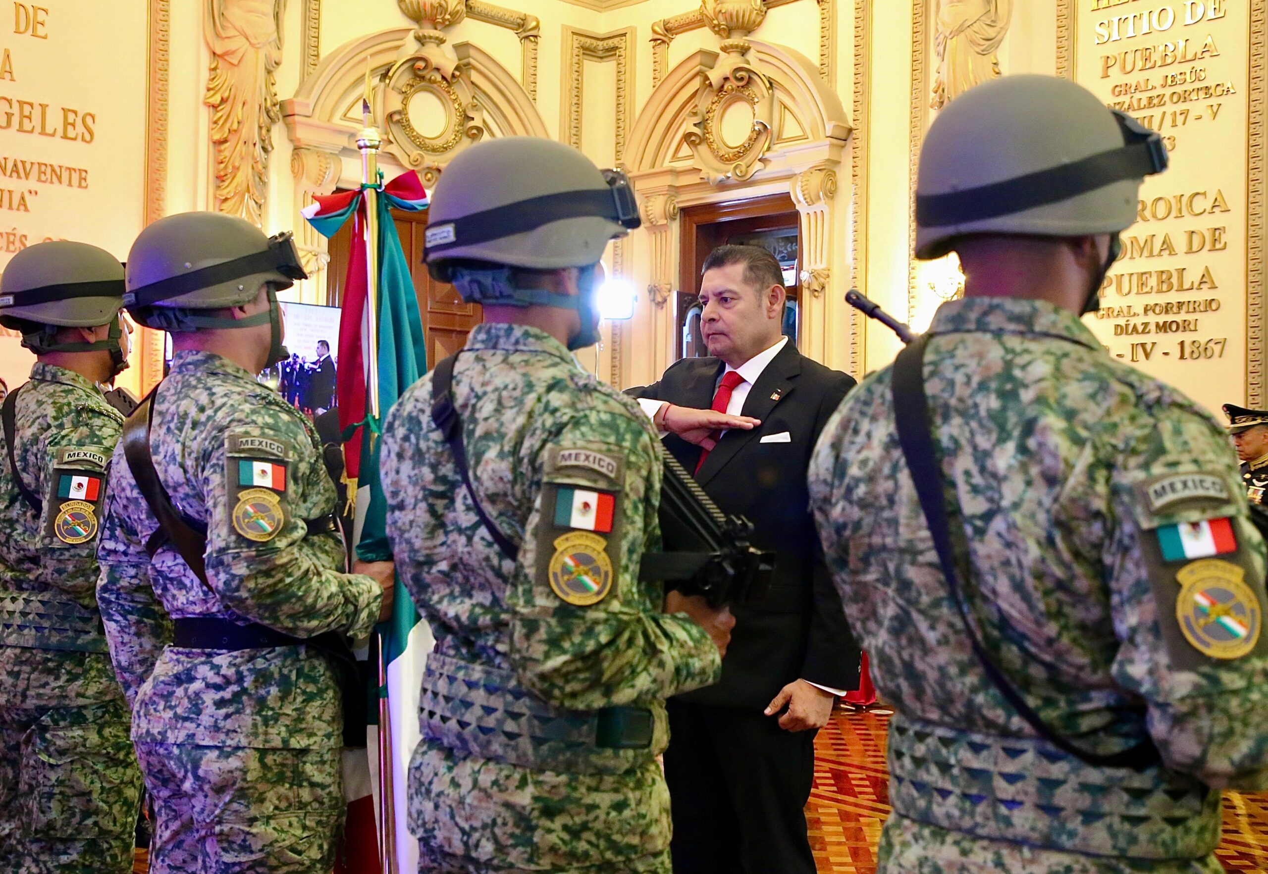 «Con el corazón repleto de emoción, alzamos nuestras voces para honrar a quienes con valor y sacrificio nos dieron patria y libertad», arengó el mandatario estatal. Con voz firme exaltó a las y los héroes poblanos anónimos que forjaron la historia. También recordó el humanismo mexicano y a los pueblos originarios.