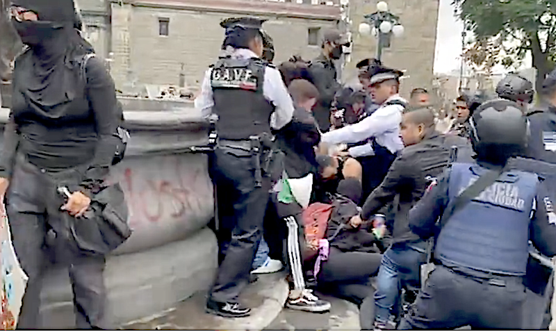 Ante tales hechos, policías municipales intervinieron y detuvieron a 4 de las agresoras que desvirtuaron la marcha por el Día Internacional de las Víctimas de Desapariciones Forzadas.
