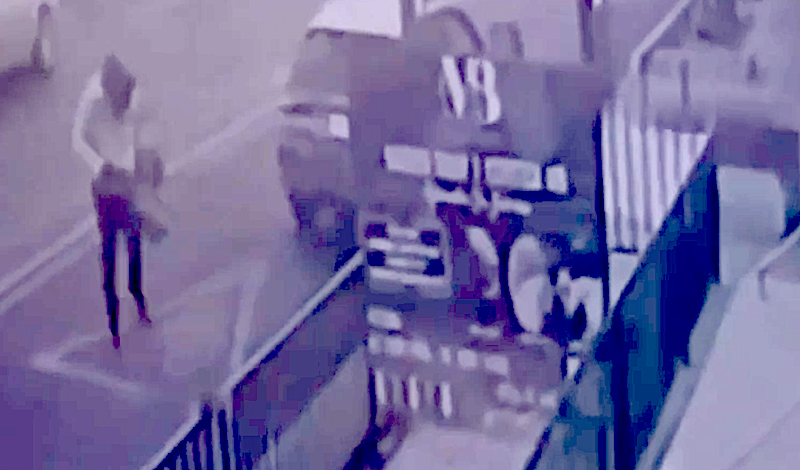 En el video difundido se aprecia al sujeto portando una chamarra blanca y un casco de motociclista.