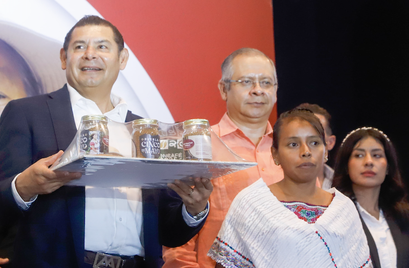 El mandatario señaló que con la marca poblana de café “5 de Mayo”, el gobierno no busca ser acaparador, será socio de los productores y van a vender al mundo para que todos los cafeticultores vivan bien y tengan ingresos, ya que aseguró esa es la única forma de combatir la pobreza. “Qué significa pasar de la venta del grano, al café soluble, significa desarrollo inclusivo, tecnología en el sector agropecuario para lograr volumen, calidad y precio, lo cual ya se hace en Puebla”, aseguró Alejandro Armenta.
