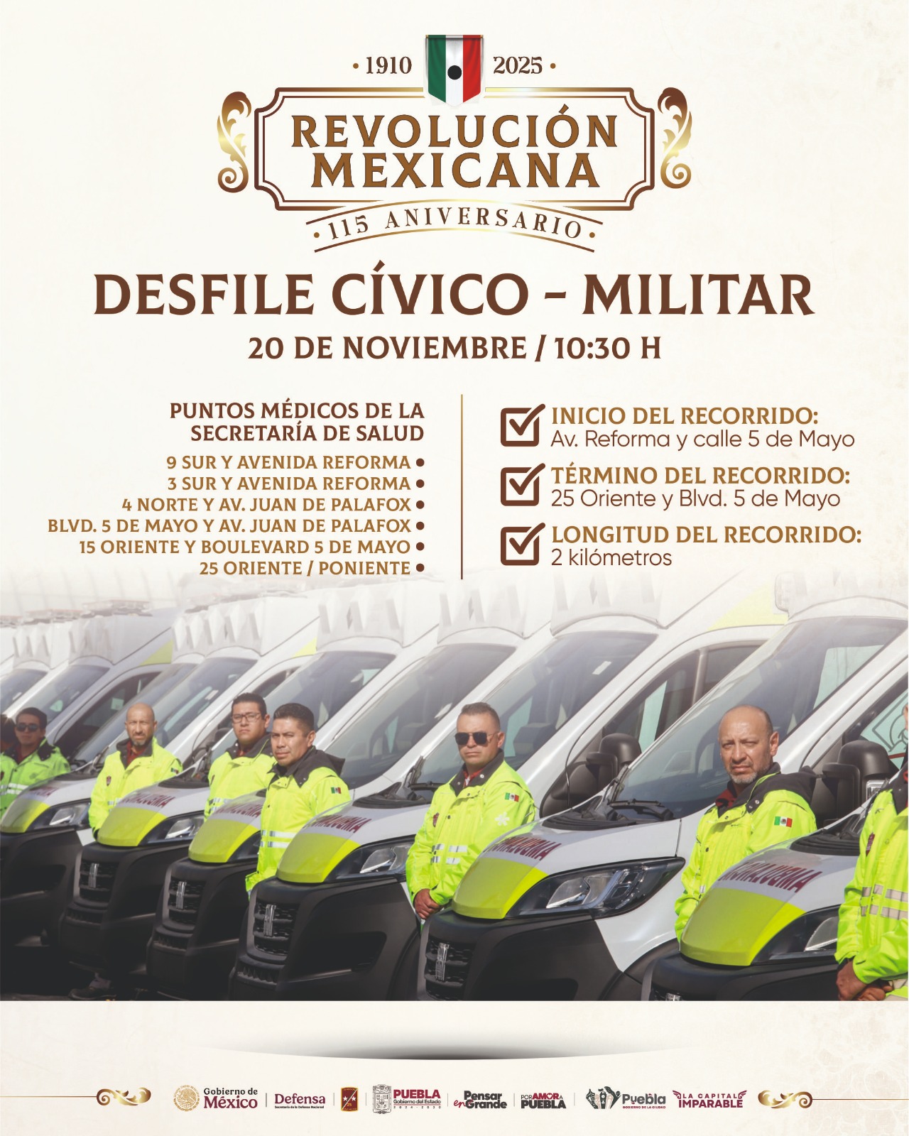 CIUDAD DE PUEBLA, Pue.- Con la participación de 3 mil 400 alumnos de educación obligatoria y superior, este jueves 20 de noviembre se llevará a cabo el desfile cívico -militar “Conmemorativo al 115 Aniversario de la Revolución Mexicana”, con el objetivo de recordar el inicio de un movimiento histórico que transformó la estructura política y social del país.