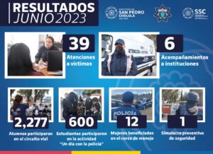 Fortaleciendo la atención ciudadana, se recibieron mil 254 llamadas de emergencia, y se le brindó atención integral a 39 personas víctimas de algún delito; además, para fomentar la cultura de la legalidad, se hicieron 6 acompañamientos a distintas personas para que pudieran formalizar su denuncia ante la autoridad competente.