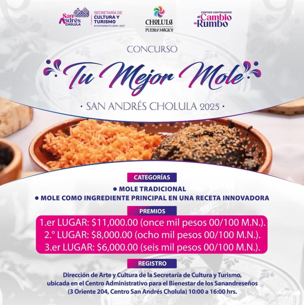 Asimismo, la alcaldesa resaltó que el concurso «Tu Mejor Mole» busca preservar las tradiciones culinarias del municipio, convocando a restaurantes y cocineras tradicionales a participar en las categorías: mole tradicional y mole como platillo innovador. Los premios serán de 11 mil pesos para el primer lugar, 8 mil pesos para el segundo y 6 mil pesos para el tercero. Además, las y los participantes formarán parte de “La Ruta del Mole 2025”.