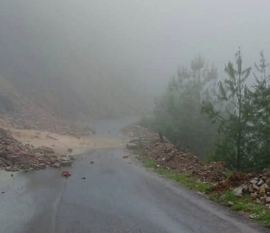 En Zacacoapan (Eloxochitlán), un derrumbe generó una acumulación de escombros, donde maquinaria militar, estatal y de Protección Civil trabaja para despejar el paso