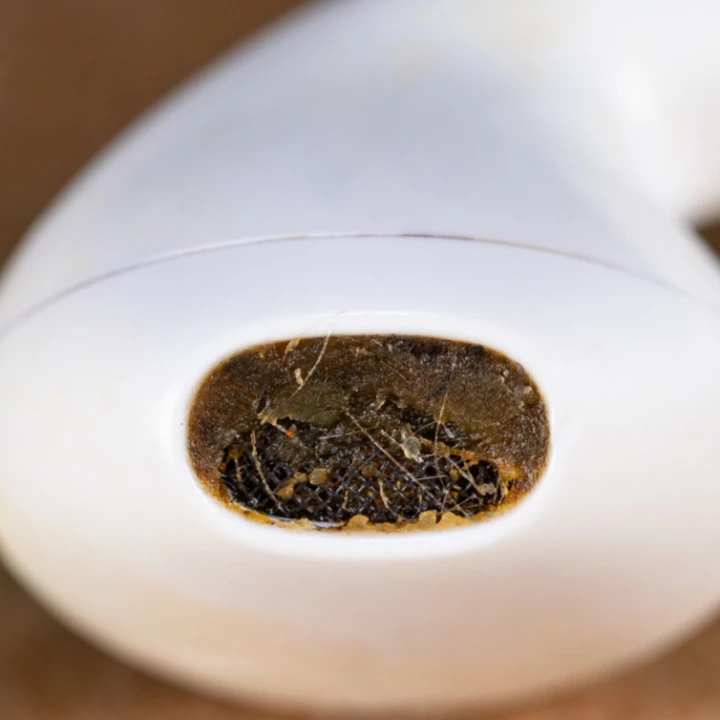 Pérdida de volumen: No es que tus audífonos fallen; es que la rejilla está tapada por una capa de biopelícula (mezcla de grasa y bacterias) que bloquea el sonido.