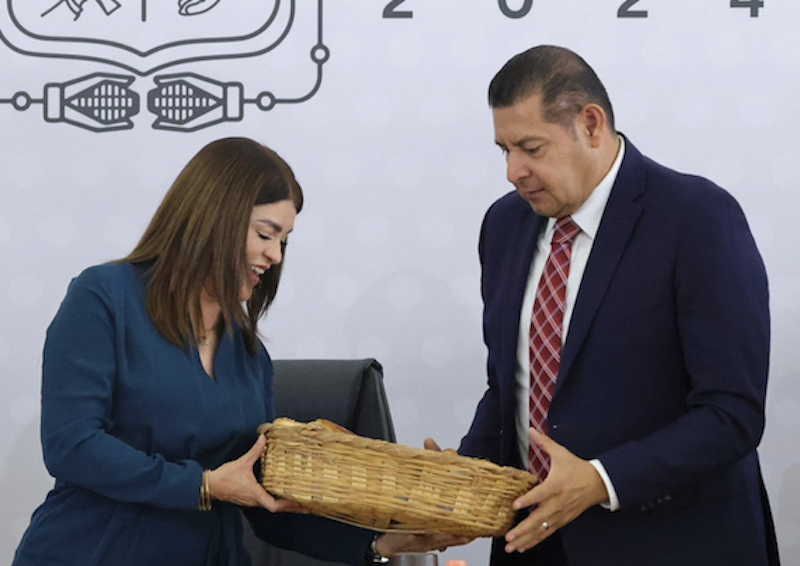 En un acto que reconoce la identidad, tradición y riqueza cultural del municipio de Zacatlán, el Gobierno del Estado que encabeza Alejandro Armenta, recibió de la presidenta municipal, de ese Pueblo Mágico, Beatríz Sánchez Galindo, una copia de la declaratoria de Patrimonio Cultural Intangible a los procesos artesanales del pan de ese municipio -relleno con queso-, expresión culinaria única que ha sido preservada por años.