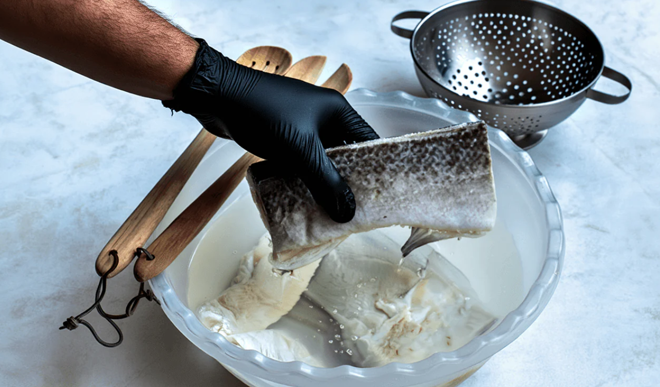 El bacalao en salazón —uno de los ingredientes estrella de recetas clásicas como el bacalao a la vizcaína o potajes navideños— necesita eliminar la sal que lo conserva para poder cocinarlo sin que el plato resulte excesivamente salado. El método tradicional implica remojarlo en agua fría durante 36–72 horas, con cambios periódicos de agua, para equilibrar el sabor y la textura del pescado.