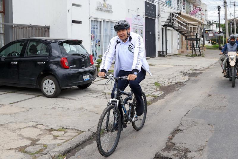 En bici Armenta recorrió calles de la ciudad de Puebla