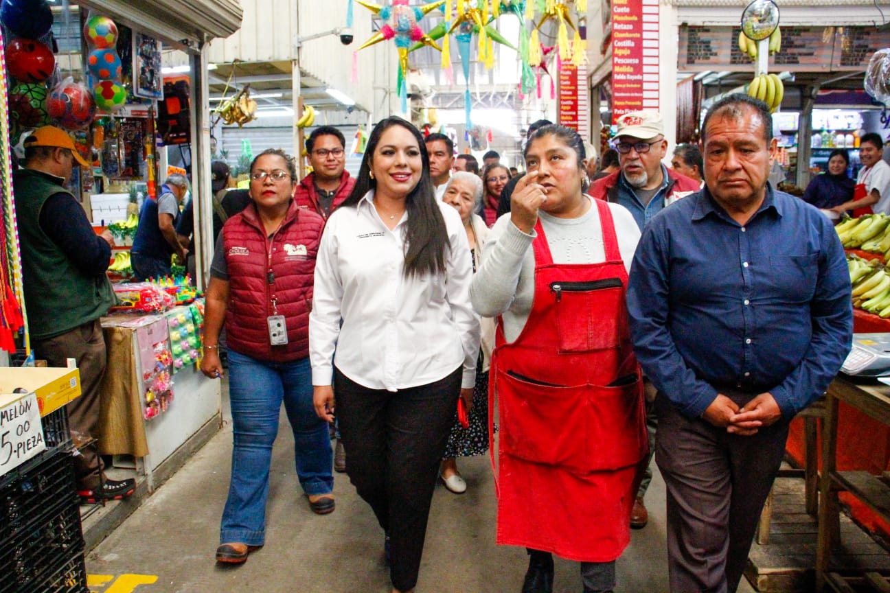 San Pedro Cholula, Pue. – Con el objetivo de mejorar los espacios comerciales y fortalecer las condiciones laborales de locatarias la presidenta municipal, Tonantzin Fernández, realizó un recorrido por el Tianguis de Santiago Mixquitla.