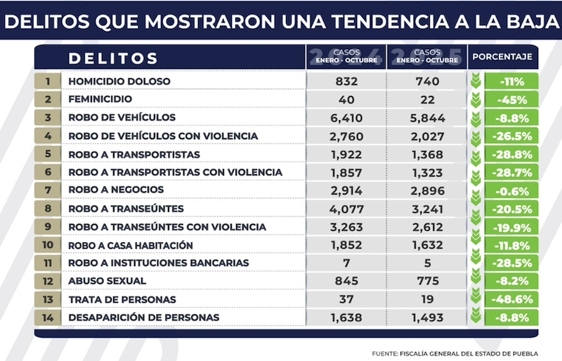 En Puebla 14 delitos de impacto social a la baja