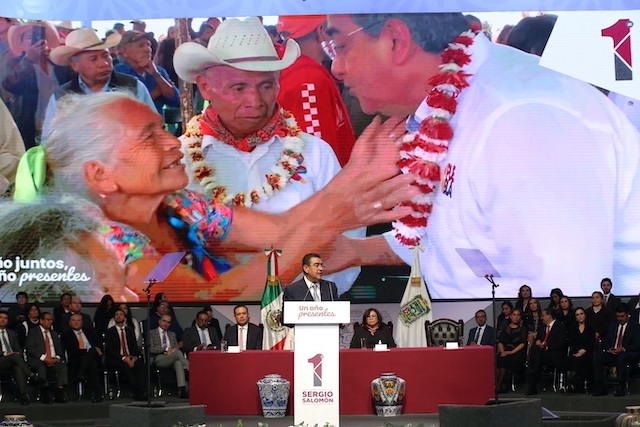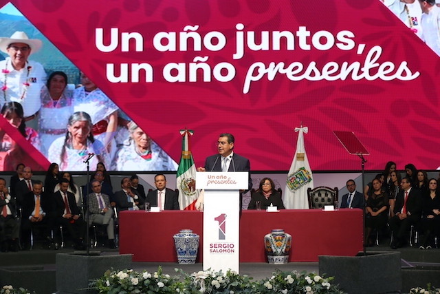 En su Primer Informe de Actividades, el gobernador Sergio Salomón ponderó los avances alcanzados en su primer año de gestión, en el que no hubo peleas entre quienes habitan esta entidad, por el contrario se trabajó como hermanos, y convocó a los diferentes sectores de la sociedad a seguir construyendo en unidad una mejor estado, y sin intereses mezquinos, así evitar que la política partidista cause divisiones”.
