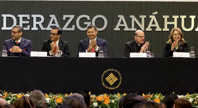 Destacó que estos centros educativos cumplen un papel central en la transformación del país y reconoció la aportación de la Universidad Anáhuac en la formación de líderes con valores y principios; de ahí que egresados de esta institución formen parte de la administración estatal, lo que refleja una coincidencia humanista en la gestión pública y privada.