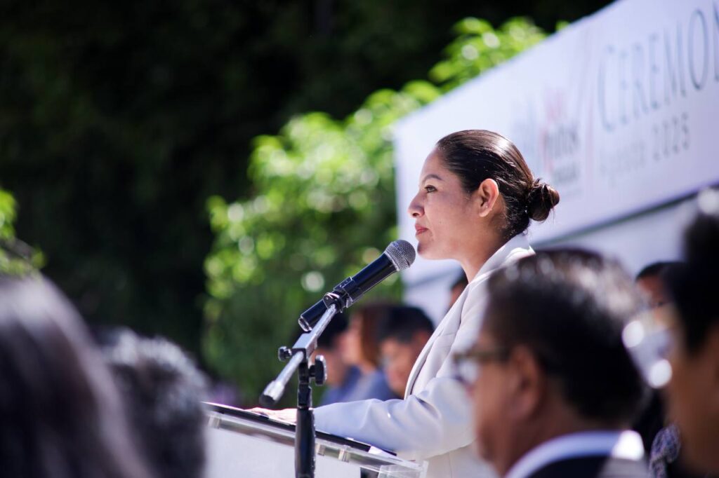 San Andrés Cholula, Puebla.– La presidenta municipal, Lupita Cuautle Torres, encabezó la ceremonia cívica del mes de agosto en la Explanada del zócalo, donde resaltó que su gobierno promueve los principios de Legalidad y transparencia.