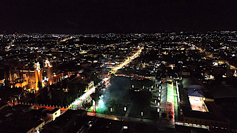 La presidenta municipal Lupita Cuautle Torres encabezó el encendido de luces en la cabecera municipal, resaltó la importancia de fortalecer los valores cívicos y patriótico.