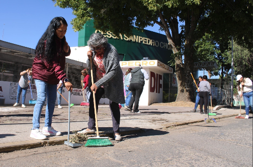 San Pedro Cholula, Pue.- Como parte de las acciones coordinadas para el mejoramiento de la imagen urbana, promovidas en conjunto con el Gobierno del Estado, la presidenta honoraria del DIF Municipal, Lupita Fernández, encabezó una faena comunitaria en las inmediaciones del DIF Municipal y del Centro de Salud de Servicios Ampliados (CESSA).