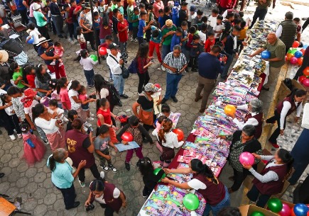 De esta forma, los infantes de Santa María Acuexcomac, San Agustín Calvario, San Gregorio Zacapechpan y San Francisco Cuapa disfrutaron de un show de payasos y juegos inflables, previo a la llegada de Lupita Fernández, quien, acompañada de los presidentes auxiliares, entregó juguetes a las y los asistentes.