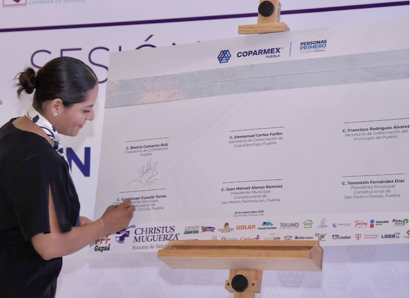 San Andrés Cholula, Puebla.- La alcaldesa Lupita Cuautle Torres, participó en el panel “Acuerdo Metropolitano por la Seguridad y la Mejora Regulatoria Homologada”, organizado por la Coparmex, el cual reunió a los presidentes municipales de la región metropolitana.