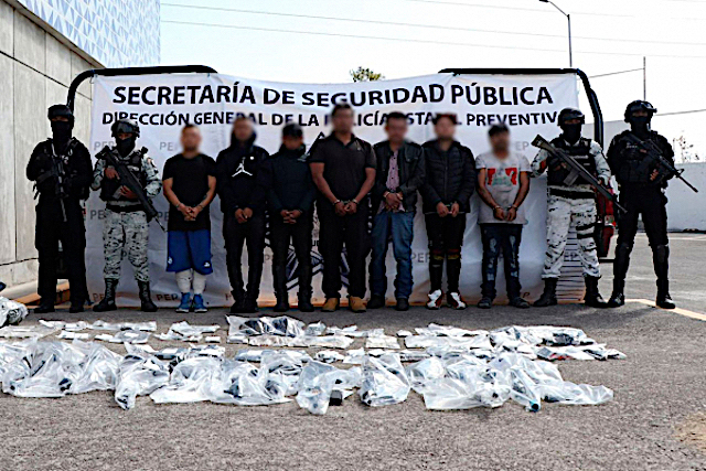 El operativo coordinado entre la Secretaría de Seguridad Pública (SSP), a través de la Policía Estatal y la Guardia Nacional, se desarrolló en calles de la junta auxiliar de Sanctorum, donde los elementos operativos lograron la detención de nueve hombres identificados como Erik Francisco N., de 22 años; Ismael N., de 20 años; José Rubén N., de 38 años; Benito N., de 47 años; Iván N., de 25 años; Ángel David N., de 20 años; Juan Manuel N., de 34 años; así como dos menores de edad.