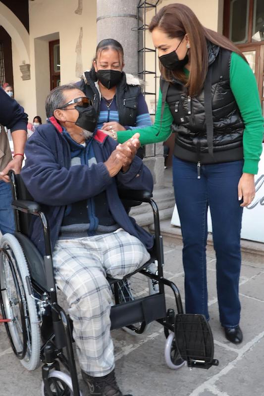 Eugenia Martínez agradeció al gobierno de Puebla por la silla de ruedas para su hija Diana, debido a que padece discapacidad neuromotora y ahora podrá transportarla sin dificultad a sus terapias. Por su parte, Ángel Saldívar también fue beneficiado con un aparato de movilidad, ya que debido a la diabetes le fue amputada una pierna.