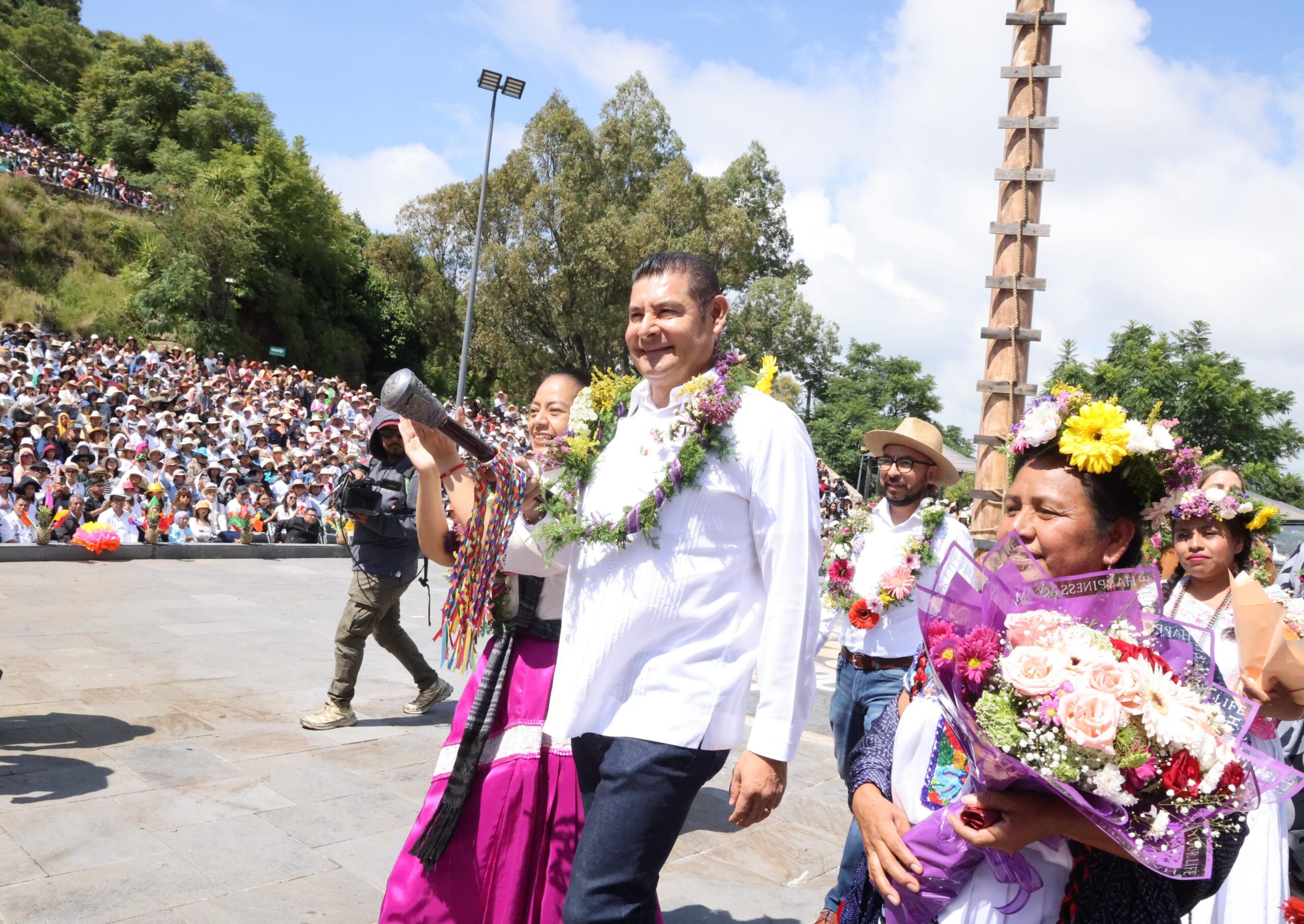 ATLIXCO, Pue.- Con una emotiva ceremonia en el cerro de San Miguel, también conocido como Netotiloyan, se celebró el 60 aniversario del Festival Huey Atlixcáyotl, el evento cultural más representativo del estado de Puebla. El gobernador Alejandro Armenta encabezó por primera vez este importante festival, y reafirma su compromiso con el rescate y promoción de las tradiciones que dan identidad al estado.