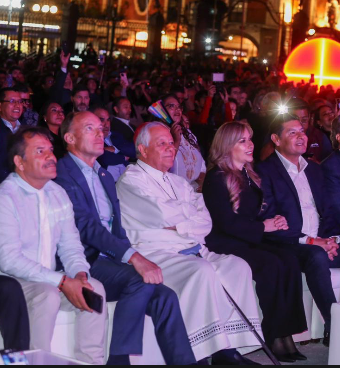 El gobernador Alejandro Armenta Mier, acompañado del arzobispo Víctor Sánchez Espinoza; Ceci Arellano, Presidenta del Patronato DIF, y centenares de ciudadanos y visitantes, apreciaron el arte entremezclada con tecnología, lo cual permite consolidar a la entidad como epicentro internacional de innovación cultural.