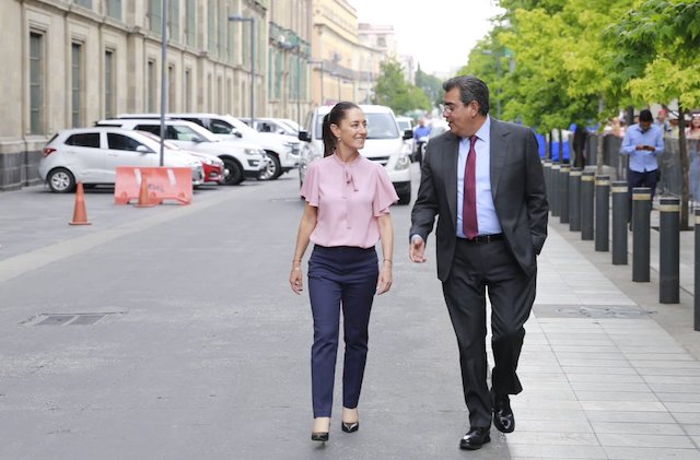A su salida de Palacio Nacional, Sergio Salomón y Claudia Sheiunbaum, pltaicaron largo y tendido sobre temas nacionales.