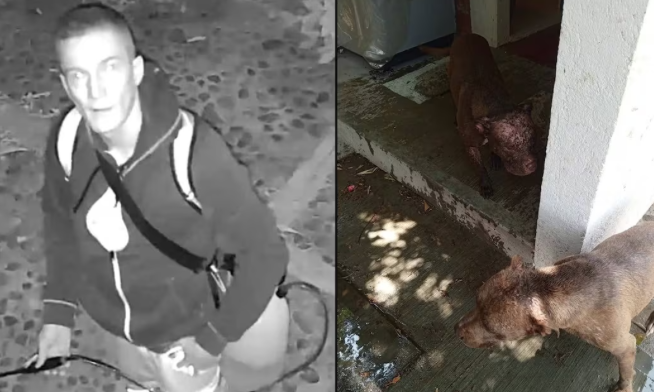 Según el material captado por una cámara de seguridad, el sujeto ingresó a una vivienda portando una bomba de ácido en la espalda. En las imágenes, se observa al hombre explorando el lugar antes de notar la cámara, tras lo cual se retira. Uno de los perros afectados aparece inmóvil en el suelo, evidenciando el daño causado. Los animales, según reportes, sufrieron graves quemaduras, con posibles daños irreversibles, incluyendo la pérdida de visión.