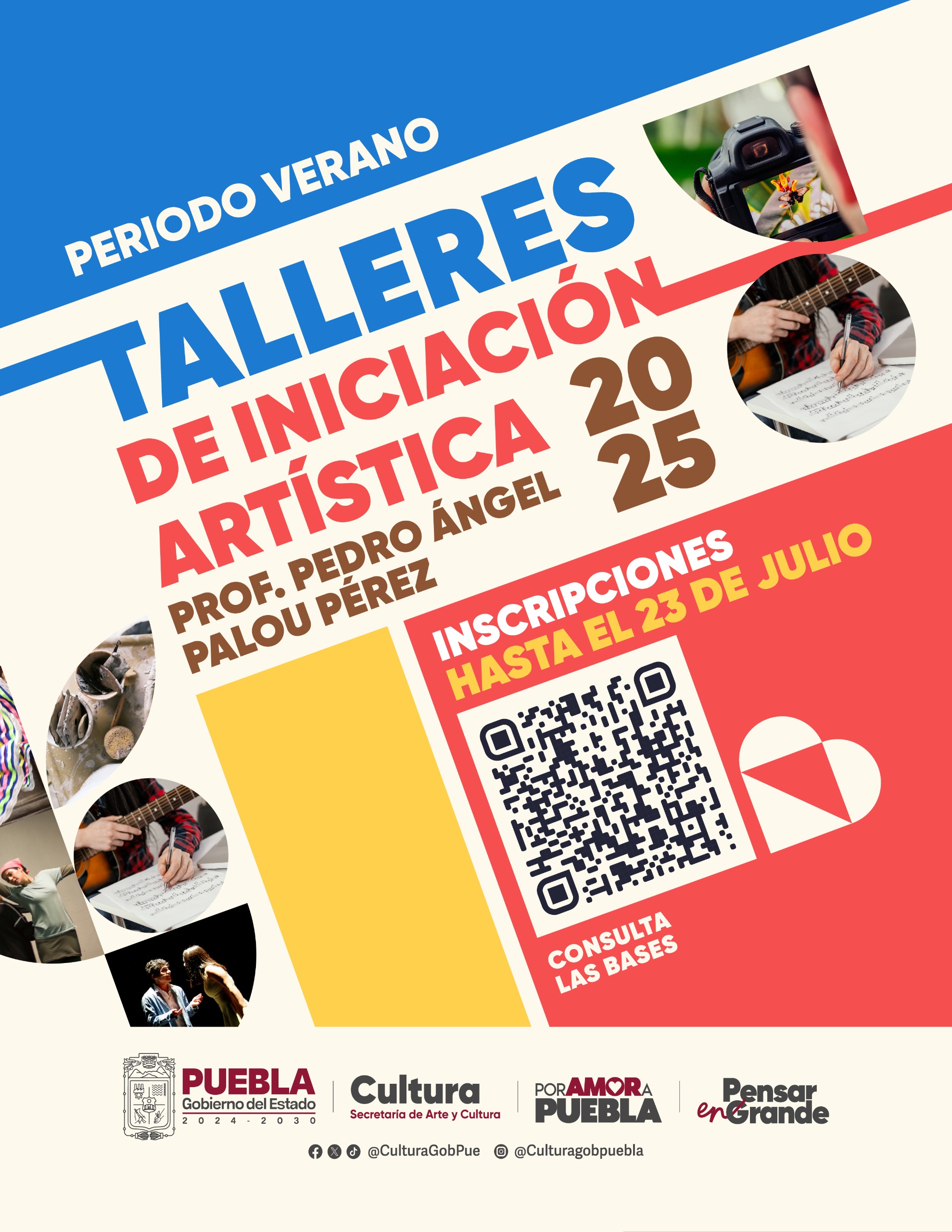 CIUDAD DE PUEBLA, Pue.- El Gobierno del Estado de Puebla anunció la oferta de verano de los Talleres de Iniciación Artística “Pedro Ángel Palou Pérez”, cuyo periodo abarca del 14 de julio al 06 de septiembre e incluye más de 40 cursos presenciales y virtuales para todas las edades.