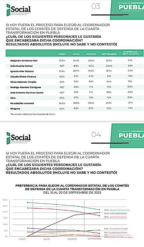 Al respecto, la casa encuestadora detalló que aplicó la encuesta “Preferencias Puebla coordinador estatal de la 4T” a mil 200 personas en la entidad, inscritas en la lista nominal, del 10 al 20 de septiembre de 2023, la cual colocó a Julio Huerta con un 20% de las preferencias respecto a quién le gustaría a la ciudadanía que encabezara la coordinación; así lo informó el maestro Javier Ramírez, politólogo del ITAM y socio director de iSocial (isocial.mx).