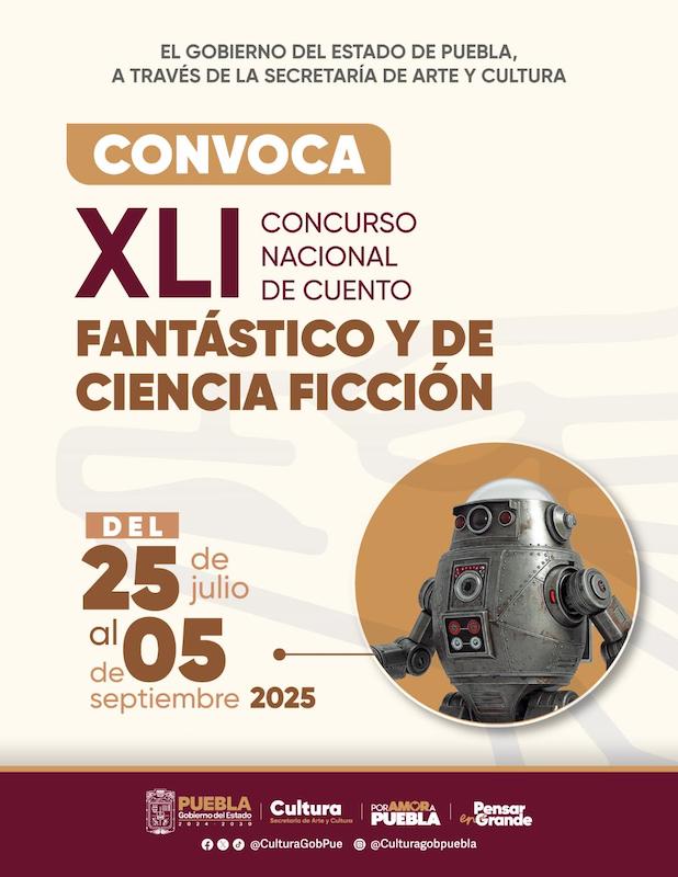 Las bases completas de las convocatorias están disponibles en la página web de la Secretaría de Arte y Cultura (sc.puebla.gob.mx). Para aclarar dudas o recibir más información, las y los interesados pueden acudir a las instalaciones de la dependencia, ubicadas en la Avenida 5 de mayo no. 1606 (entrada por la 18 oriente) del Centro Histórico, de lunes a viernes de 10:00 a 15:00 horas, o comunicarse al correo electrónico talleres.literarios@puebla.gob.mx.