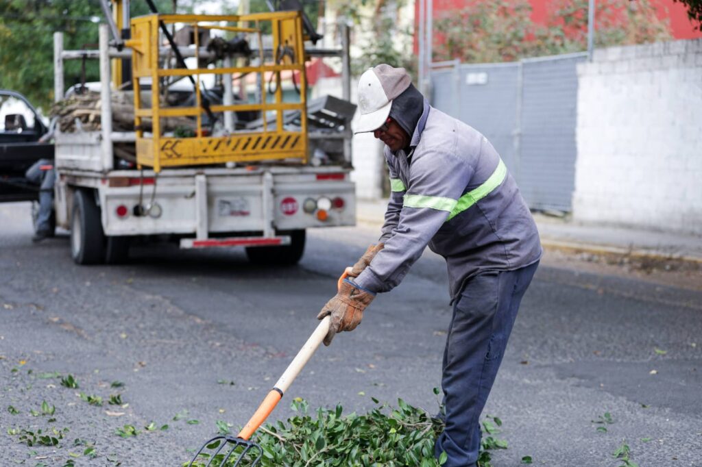 Las cuadrillas de trabajadores de la comuna se apreciaron en el camellón central del Boulevard Vicente Lombardo Toledano, en la Colonia Gobernadores de la Delegación Atlixcáyotl.