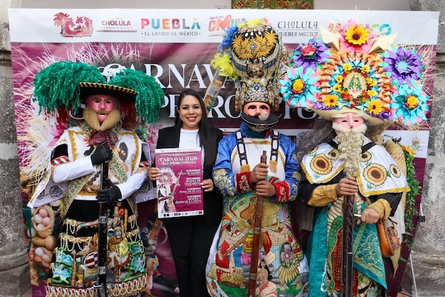 San Pedro Cholula, Pue. – Con el objetivo de conservar, fortalecer e impulsar las tradiciones que dan identidad a San Pedro Cholula, la presidenta municipal, Tonantzin Fernández, presentó el calendario de actividades del Carnaval de San Pedro Cholula 2026, en compañía de generales y representantes de los distintos batallones que lo conforman.