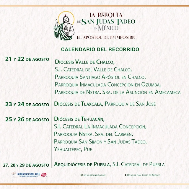 El programa oficial del recorrido: En Tehuacán, estará el 25 y 26 de Agosto; y en Puebla capital los días 27,28 y 29 de agosto.